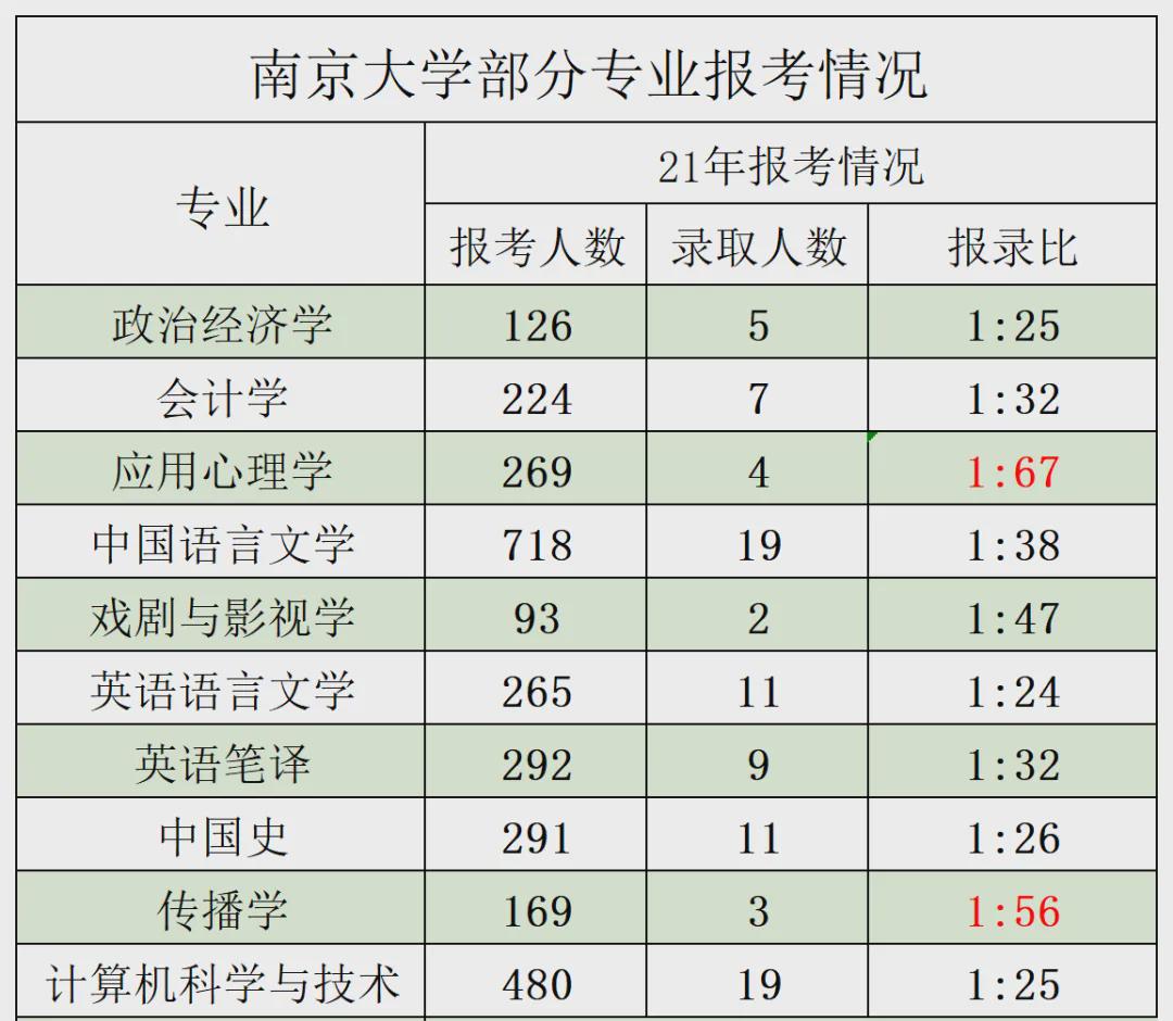 要比谁更卷的话,南京大学应用心理学专业当仁不让。曾经21年应用心理学专业报录比高达1:67,传播学报录比高达1:56!