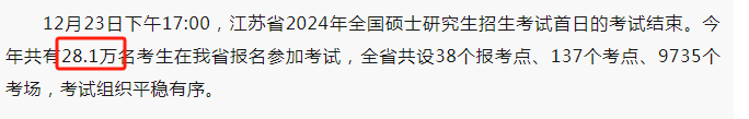 根据有关部门数据显示,24年江苏省考研报考人数在28.1万,在考研报考人数榜单上也是前几名的存在。