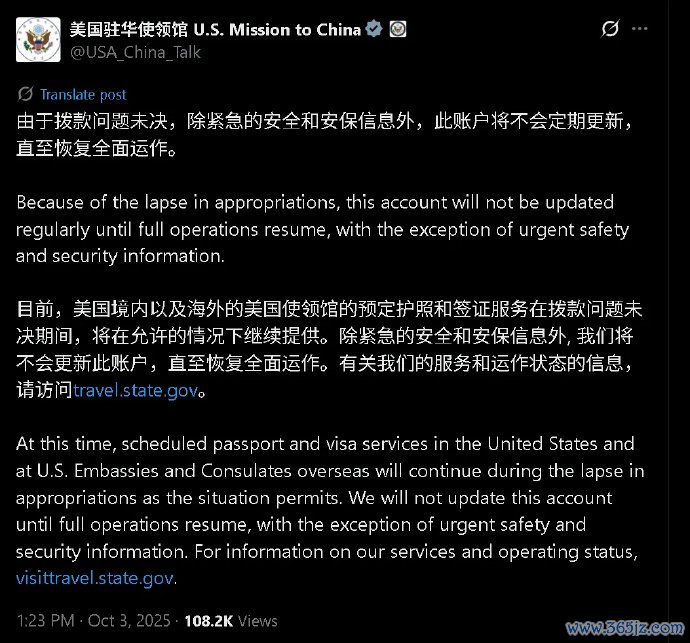 美驻华使领馆官号宣布停更美驻华使领馆官号宣布停更